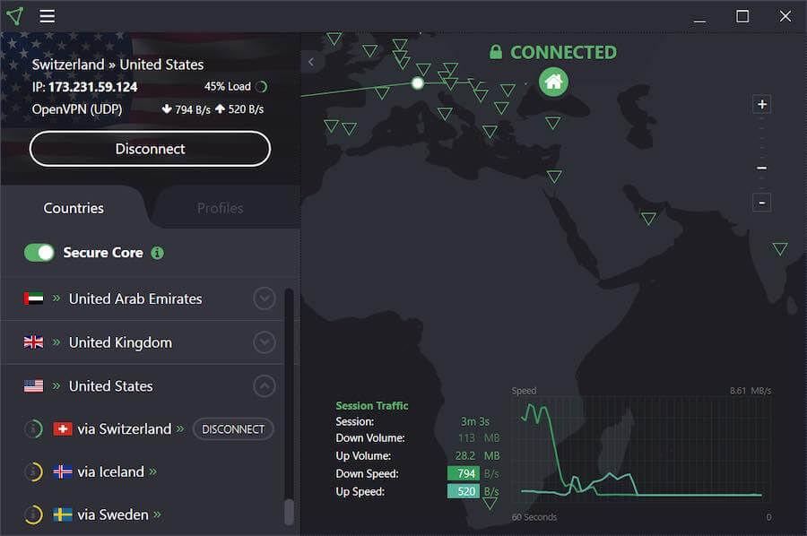 Proton VPN takes a different approach. Their Secure Core initiative physically protects their core servers in what are considered to be secure locations. These are locations with extra physical security that are located in good privacy jurisdictions: