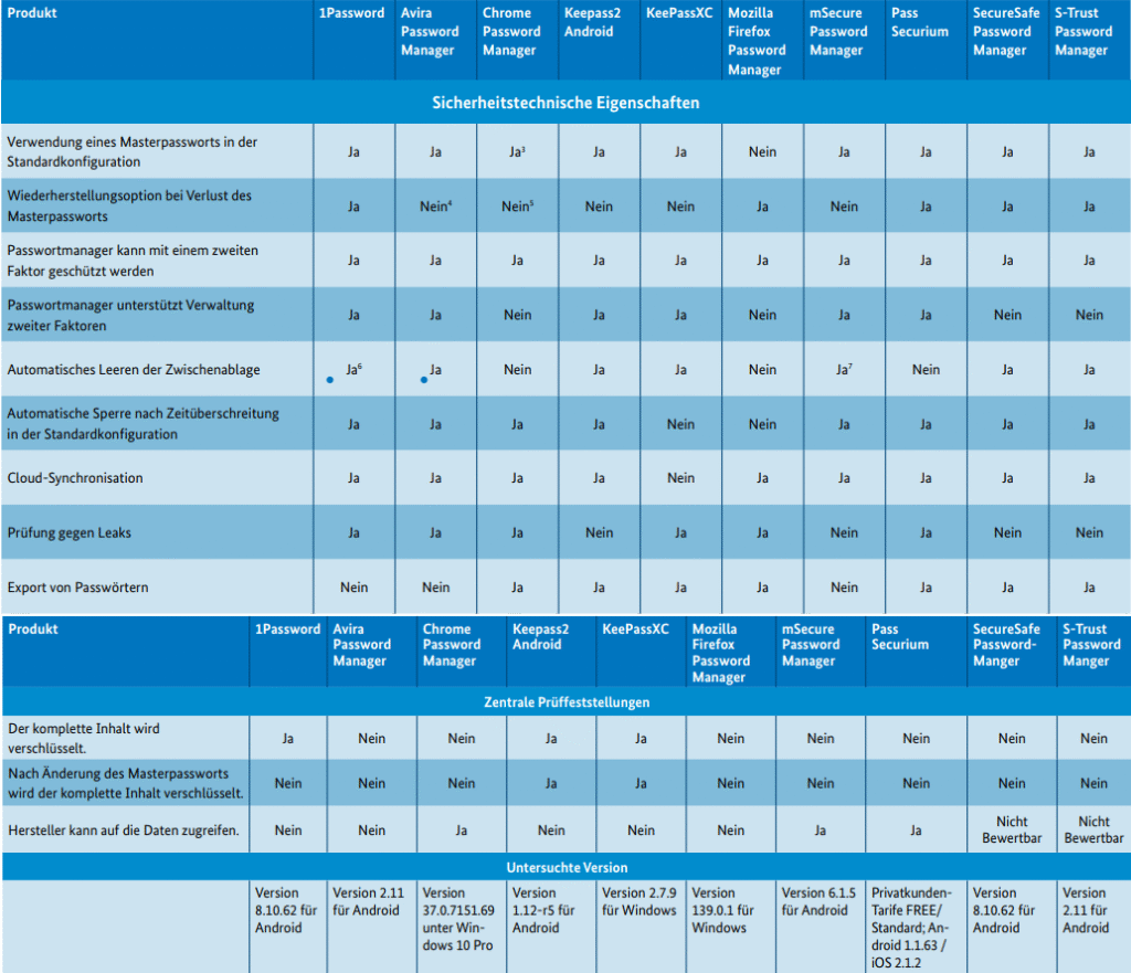 The audit was carried out by BSI in collaboration with the FZI Research Center for Information Technology and covered the following tools: 1Password, Avira Password Manager, Chrome Password Manager, KeePass2Android, KeePassXC, Firefox Password Manager, mSecure, PassSecurium, SecureSafe, and S-Trust.