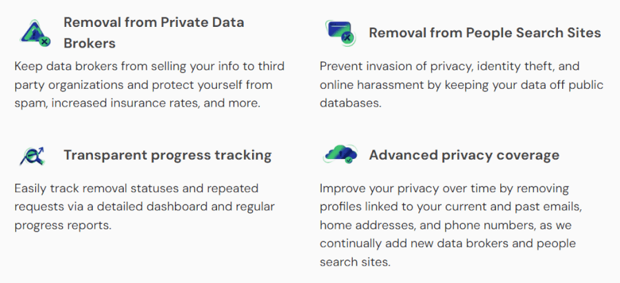 | Extra security and privacy features | Focused solely on automated data broker removals |