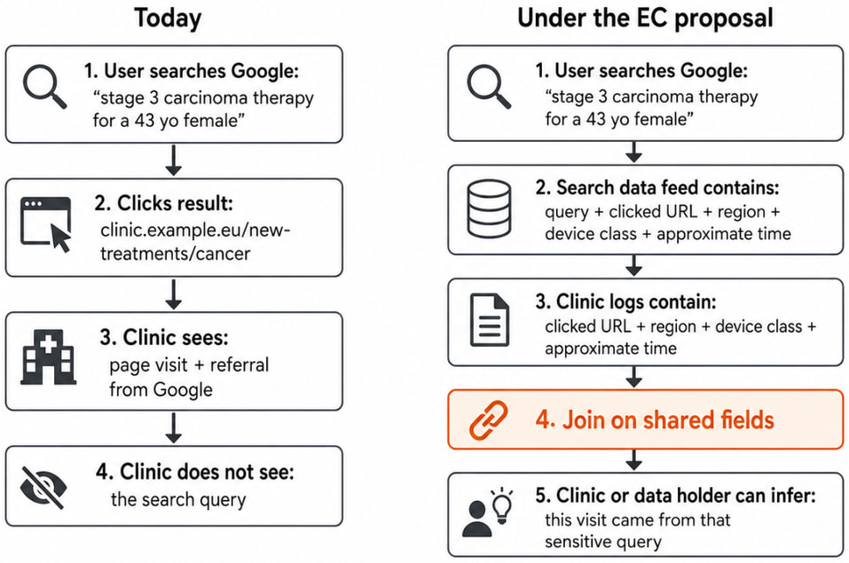 At the center of the proposal is a requirement for Google to provide a continuous, API-based feed of search activity across the European Economic Area. This dataset reportedly includes full search queries, timestamps, approximate location data, language, device information, and detailed user interaction signals, such as clicks, scrolls, and query refinements. While direct identifiers such as IP addresses and account IDs would be removed, Olejnik argues that the remaining data still poses significant re-identification risks.