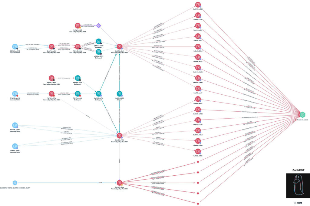 The incident was first brought to light by blockchain investigator ZachXBT, who traced a series of coordinated thefts spanning Bitcoin, Ethereum-compatible networks, Tron, Solana, and XRP Ledger. According to his Telegram post, attackers siphoned funds from victims who unknowingly installed the fake application masquerading as Ledger’s official wallet management software.