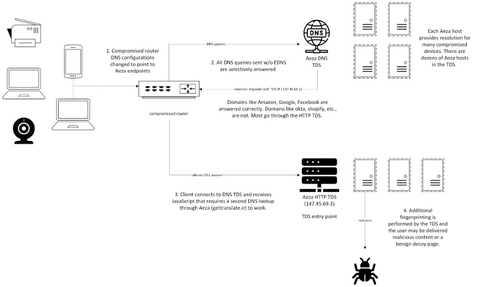 The operation was discovered by Infoblox researchers investigating anomalous DNS behavior and was traced back to a complex system involving router exploitation, DNS manipulation, and an HTTP-based traffic distribution system (TDS). The campaign has been active since at least mid-2022 and appears to be financially motivated.