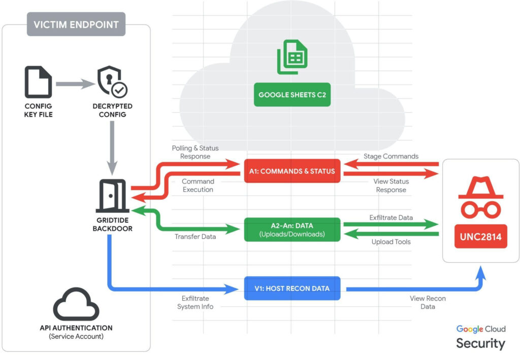 GRIDTIDE is a C-based backdoor capable of executing arbitrary shell commands and transferring files to and from infected systems. What distinguishes it is its use of Google Sheets as a command-and-control (C2) mechanism.
