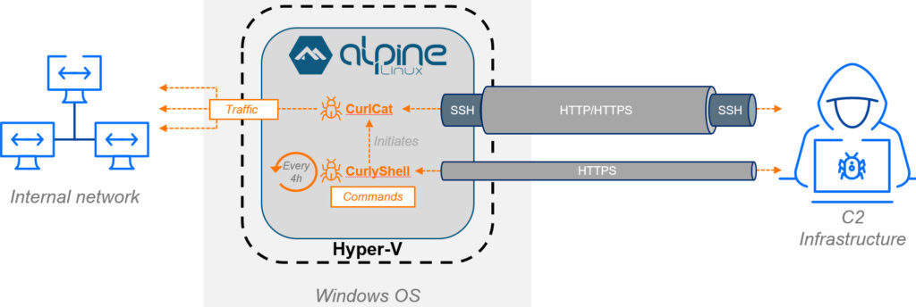 The Russian-aligned APT group Curly COMrades are deploying hidden Alpine Linux virtual machines (VMs) on compromised Windows hosts via Microsoft Hyper-V.