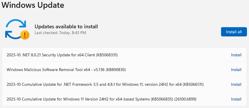 Windows 11 users running versions 24H2 and 25H2 will receive OS builds 26200.6899 and 26100.6899, respectively. The update integrates previously released changes from KB5065789, so systems with that package installed will only receive incremental updates.