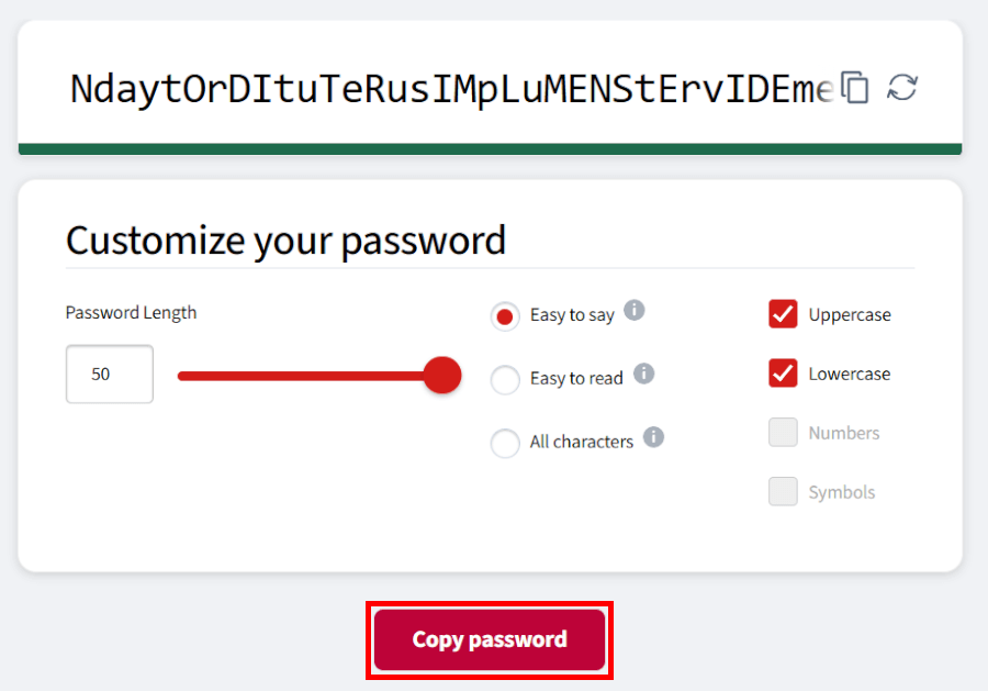 Simply go to the right page, choose the length of your password (the maximum is up to 50 characters with LastPass and up to 60 characters with NordPass), and copy your password once it’s generated. There’s nothing to complain about with either of these handy tools.