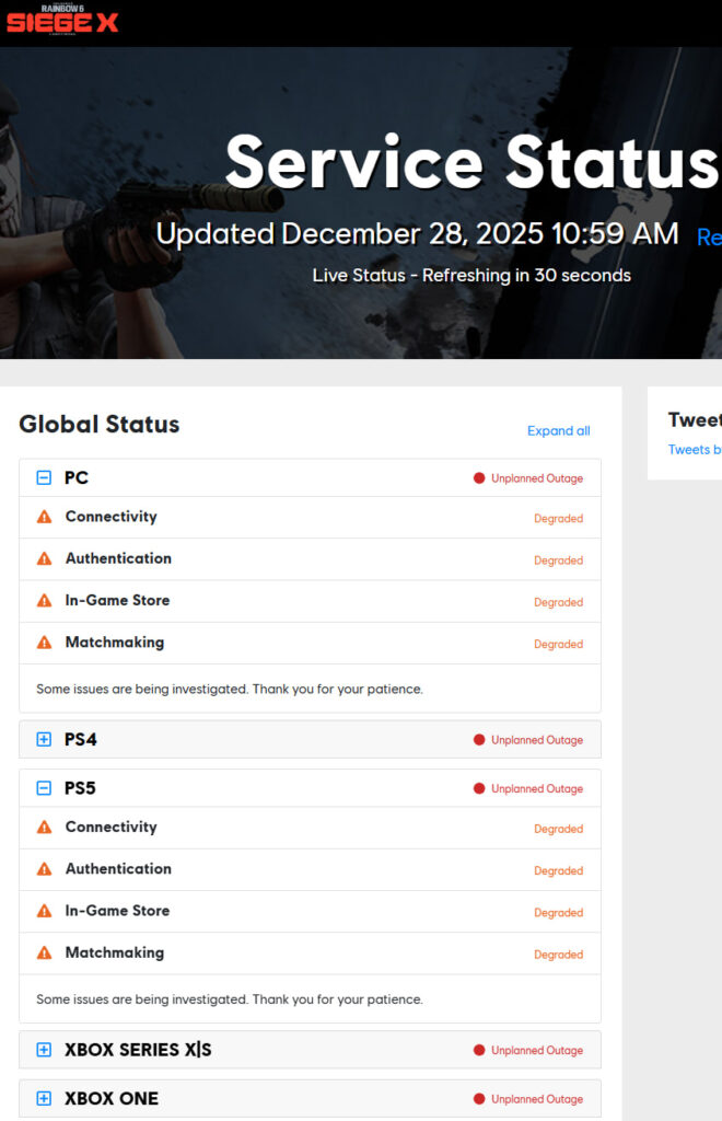 The attack has resulted in unplanned outages across all platforms, including PC, PlayStation 4/5, and Xbox Series X|S/One, according to the official Rainbow Six Siege service status page. Core services such as authentication, connectivity, in-game store access, and matchmaking are currently degraded or offline, with Ubisoft confirming that investigations are ongoing.