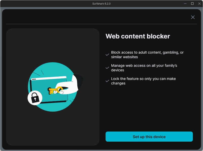 The Web Content Blocker is a new Surfshark feature that lets you block entire categories of web content, including adult content and gambling sites.Once you set it up on one of your devices, you can manage the web access for all of your family's devices running Surfshark, as you can see below: