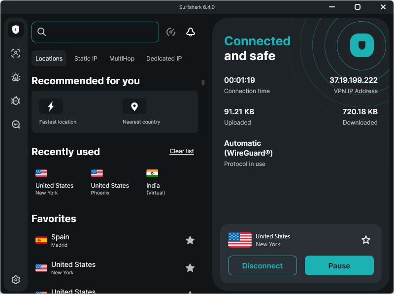 Like NordVPN, Surfshark also supports the WireGuard VPN protocol and delivers very fast speeds, challenging NordVPN on this front too. It even beat out ExpressVPN in our ExpressVPN vs Surfshark comparison.
