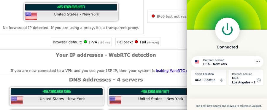 We tested ExpressVPN and found that their built-in leak protection worked flawlessly: