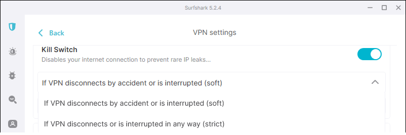 In contrast to ExpressVPN, Surfshark VPN apps include all features and settings within the same window. In other words, a second window will not pop up. Below is the Surfshark Windows VPN app we tested, which allows you to select different tabs on the left to change servers, features, etc.