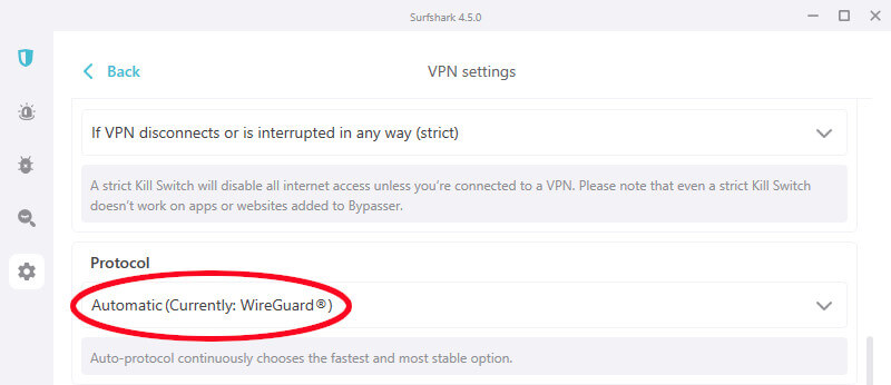 When you use Surfshark's WireGuard VPN protocol, your traffic is protected by a ChaCha20 cipher and other advanced encryption technology. When you use their OpenVPN or IKEv2 VPN protocols, Surfshark uses the AES-256 cipher for encryption to give your traffic the security it needs.